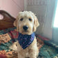 Each "Blue Blooms" bandana is handmade and tailored fit to your pet's neck. Please take measurements and refer to our Sizing Chart to ensure you select the appropriate size.