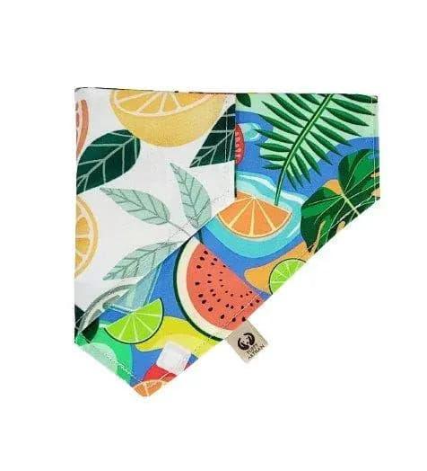 You can have the option of double sided pattern bandana featuring same design on the front and back or you can choose the reversible option featuring the second design "Sweet Citrus".